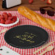 This simple and aesthetically designed paper plate features a gold colour vibrant typography on a black background. Perfect party supplies for a modern and simple theme birthday celebration.