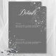 Capture the essence of timeless sophistication with our exquisite wedding invitation suite. Crafted with a soft charcoal grey background and adorned with modern white text, this wedding details enclosure card exudes class and style. Minimalistic yet captivating, it features a cluster spray of sparkling diamonds scattered at the corner, adding a touch of glamour and luxury to your special day. Created by Simply Farmhouse Press.
