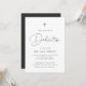 Invite guests to celebrate your little one's dedication with these modern and minimal invitations in classic black and white. Simple design features "Dedication" in casual handwritten script, with your ceremony and celebration details beneath in modern soft ash black lettering. A small modern cross illustration completes the design.