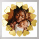 Elegant minimal heart photo featuring hearts frame photos in gold or silver foil. Simple and tasteful.
