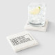 The coasters are gorgeous, a quality feel and heavy weight. They look like a precious archeological find. A rustic stone juxtaposed with a modern floral black and white print. I like the way the print goes slightly imperfect on the cut stone edges giving them a kind-of natural beauty.