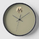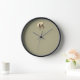 Modern Minimalist Brushed Metallic Gold Stylish Typography Sage Green Background Black Frame Home Office Kitchen Living Room Bathroom Clock