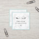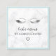 Elegant lashes and brows business cards feature faux silver lashes, white marble background texture, mint frame, black heart and elegant calligraphy font.