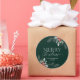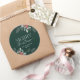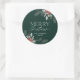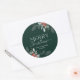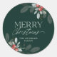 This round Christmas sticker features elegant winter greenery and berries on a dark green background. The design is accented with trendy handwritten style text "Merry Christmas" which offers a touch of sophistication.