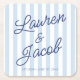 Modern Minimal Minimalist Blue Stripes Wedding Square Paper Coaster