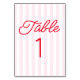 Modern Minimal Minimalist Red Pink Stripes Wedding Table Number