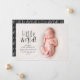 Hello world hand written modern minimal photo birth announcement. Modern graphic marker pen typography design. Modern black and white backer.