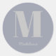 Modern Minimal Monogram Initial Grey Name Classic Round Sticker