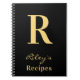 Modern Minimal Monogram Name Black Gold Recipe Notebook