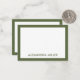 Double-sided timeless custom flat note card design features olive green and white monogram design with name in the lower thirds, framed in olive. Elegant typography that can be personalised with your name or custom text. Space for your handwritten note is included on the front and back.