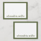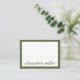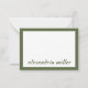 Double-sided timeless custom flat note card design features olive green and white monogram design with name in modern script in the lower thirds, framed in olive. Elegant note card that can be personalised with your name or custom text. Space for your handwritten note is included on the front and back.