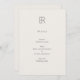 Modern minimalist wedding menu featuring an elegant interlocking monogram and clean, refined typography. Designed for city hall, civil, elopement, and contemporary weddings, this wedding menu presents courses with clarity and understated sophistication.