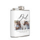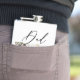 The flask itself is fine. It’s a cheap flask, obviously bought in bulk, however am prepared to overlook that. Given that it is a personalized item, I would have liked to have seen gift boxing instead of the generic packaging. Terrible printing, and/or quality. It’s a cheap, tacky vinyl. It is not cut straight and is also applied in a way that it is overhanging the bottom, causing the glue to catch on items and it will eventually roll and tear, damaging the wrap.