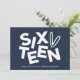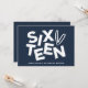 Modern minimal bold typography 16th birthday navy blue and white party invitation.