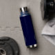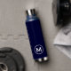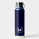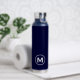 This modern water bottle design features a rich navy background, with your monogram initial in bold white text for a look that is simple and stylish, yet professional.