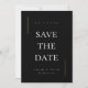A simple, modern non photo save the date with elegant vertical gold bar accents. A great way to announce your upcoming wedding nuptials or event.