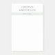 White and pale dusty sea green sticky notes featuring your name in a modern sans serif font with custom text below over a light dusty sea green band.