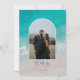 stylish christmas card design featuring trendy mix of bold and script font, space for your chosen photo on front with beach and sea graphic on reverse
