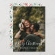 Modern Minimal 1 Photo Merry Christmas Script Overlay Holiday Card. Reverse of card has a festive watercolor with red berries and greenery. Easy to personalise with your names and favourite photo.