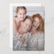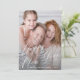 Simple stylish minimal trendy photo overlay chic white calligraphy and snowflakes Happy New Year greeting card template personalised with your photo, and family name