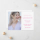 Modern graduate photo announcement featuring a stylish pink and white portrait, elegant typography, and clean minimal layout. Perfect for seniors celebrating their graduation milestone with a timeless design that highlights their graduate achievement and memorable photo.