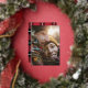 Modern minimal photo tartan red elegant script foil holiday card