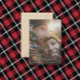 Modern minimal photo tartan red elegant script holiday card.