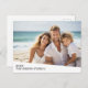 Use a horizontal or landscape photo and make a unique and trendy photo postcard. This modern minimal design includes a diagonal colour block with text to add any names and text. If you need to move anything around, click on the customise button to make changes.
