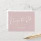Custom-designed wedding postponement/change the date postcard featuring modern white hand lettering design on dusty rose/blush pink background.