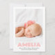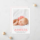 Introducing the Modern Minimal Pink Girl Photo Birth Announcement card! This stylish card features a beautiful photo of your little one, along with their name in a charming shade of pink. The design is sleek and modern, with plenty of space to showcase your baby's photo.
