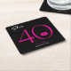 Modern and chic, this birthday paper coaster design declares, "she's 40" and combines classic black and white with accents of bright pink, with a playful pair of lips. It's minimal design is a simple and fun design to celebrate the milestone birthday. Created by Simply Farmhouse Press.