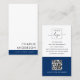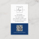 Modern, vertical business cards with your name and title on the front and customisable template fields for your contact information, logo and QR code on the back. Dark blue and white or custom colours. You can change fonts and colours, move and resize elements with the design tool.