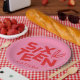 Modern minimal bold typography 16th birthday red and pink party decor favour paper plate design.