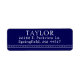Modern minimal navy blue and white return address labels featuring a chic serif font for a minimalist feel.