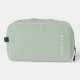 Modern Minimal Sage Green Personalised Name Dopp Kit. Crafted with a modern minimalist design, this bag is perfect for keeping your essentials organised on the go. Personalise it with your name or initials for a touch of elegance. Ideal for busy professionals, frequent travelers, or anyone who loves keeping things tidy in style. Simplify your beauty routine with this chic accessory!