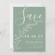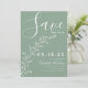 Modern Minimal Sage Green Save The Date Invitation. Stylish minimalist save the date Photo card with simple elegant script font foliage and photo.
