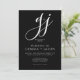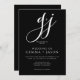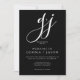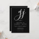 Simple modern minimalist wedding invitation, with script initials. White typography on black.
