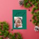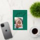 Modern minimal script green joy 1 photo holiday card. Elegant real gold, silver and rose gold foil design.
