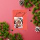 Modern minimal script red joy 1 photo holiday card. Elegant real gold, silver and rose gold foil design.