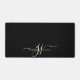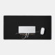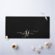 An elegant modern minimalist style monogrammed desk mat with a sans serif name and elegant white swash script initials on black desk mat. For home or office.