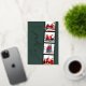 Modern minimal script multi photo Christmas green retro design. Elegant classy real gold, silver and rose gold foil design.