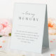 Simple and chic sign is perfect for placing at your wedding reception memorial table or display honouring loved ones who have passed. Personalise the header and body text (shown with "In Loving Memory" and a brief poem) in soft black handwritten script and classic block lettering.
