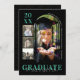 Simple arch frame photo graduation announcement. You can customise it with the graduate's name, school name, or date. Trendy mint and black complimenting colour scheme. All colours are editable to change to your school or party theme colours. Hand lettered text overlay "The Best Is Yet To Come".