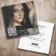 Add your photo and QR code to this simple design template. A simple professional business card. Social media icons included on the back. Stylish and trendy. Simple photo suitable for many occupations. Photographer, model, makeup artist, stylist, hair stylist, or any occupation requiring a stylish photo. Replace this placeholder sample photo with your own creative photo.