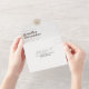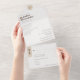 An improved version of the tri-fold invitation now with a tearaway rsvp section. Enjoy a simple minimal design with touches of taupe, combined with a signature style calligraphy typography, for a modern chic look. This all-in-one sustainable invitation would save you money, no need to include RSVP envelopes, your guests will tear away the last panel and mail it back to you as a postcard.