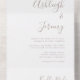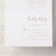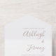 This simple modern all-in-one wedding invitation features taupe text on a white background. Add the names of the bride and groom in stylish handwriting calligraphy and the details in sans serif font. The detachable RSVP makes it easy for your guests to respond. Add your return address in to the exterior flap and back of the RSVP.