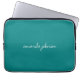 Modern Minimal Teal Blue Monogram Full Name Laptop Sleeve