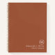 Modern notebook features a minimal design in a trendy terracotta colour palette with white accents. Custom name presented in the lower right-hand corner in stylish simple font with a complimentary minimal monogram medallion.