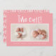 Two cute graphic twin photo birth announcements. Modern graphic fun chic marker pen typography design. Colours can be changed.