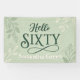 Celebrate a milestone birthday in style with this elegant "Hello Sixty" banner, featuring a soothing sage green background adorned with delicate leaf accents. Personalise it with the honoree's name for a truly special touch. Perfect for decorating your party space, this banner adds a sophisticated and heartfelt element to any 60th birthday celebration!